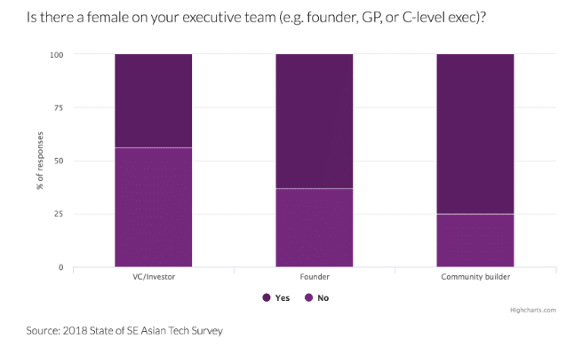 As a topic of discussion also noted in Silicon Valley, gender diversity in tech is an issue with room for improvement across the globe. In Southeast Asia, our survey found that 40 percent of respondents worked in businesses with all-male senior management.