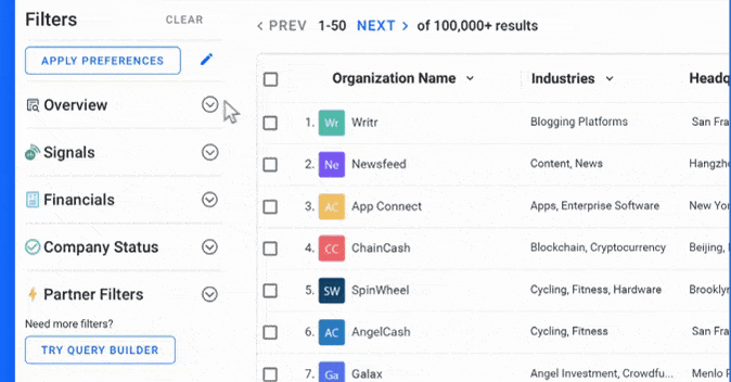 Let’s say you’re selling to health care companies. Even if you have a comprehensive list of recently funded health care companies, you don’t want to waste your time reaching out to every single one of them. Some of them might have just raised a seed round or small Series A and might not have the means to buy your solution. Instead, by filtering out companies that have already raised, say $20 million, along with new funding in the last 30 days, you can bet they have the means to purchase your product or services.