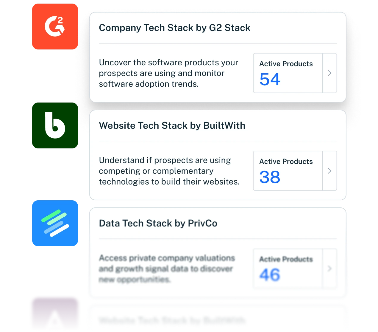 Aberdeen, BuiltWith, G2 Stack, IPqwery, and PrivCo are all included in the Data Boost bundle.